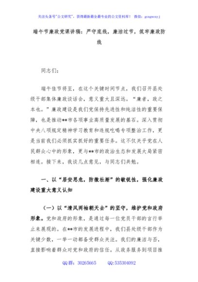 / 端午节廉政党课讲稿:严守底线,廉洁过节,筑牢廉政防线