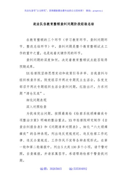 / 政法队伍教育整顿查纠问题阶段经验总结