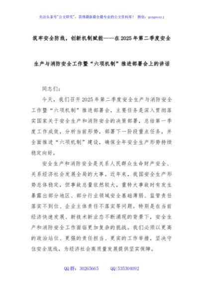 / 筑牢安全防线,创新机制赋能——在2025年第二季度安全生产与消防安全工作暨“六项机制”推进部署会上的讲话