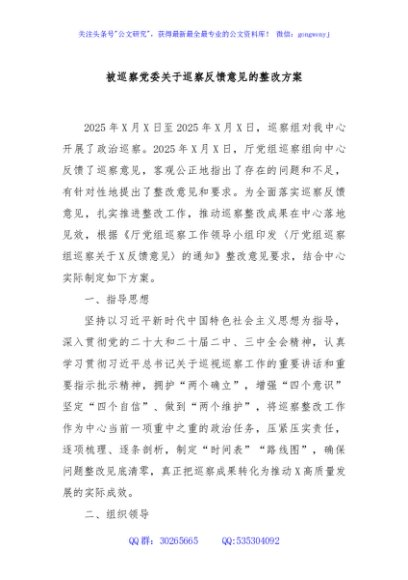 / 被巡察党委关于巡察反馈意见的整改方案