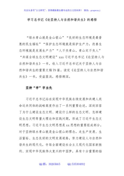 / 学习总书记《论坚持人与自然和谐共生》的感悟