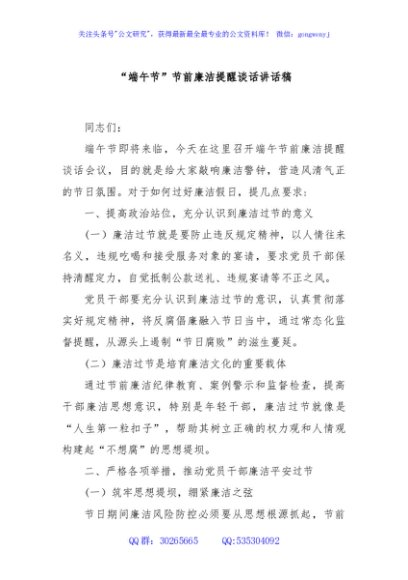 / “端午节”节前廉洁提醒谈话讲话稿