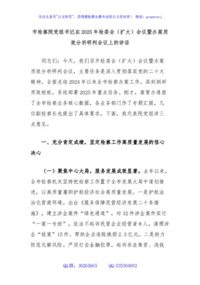 / 市检察院党组书记在2025年检委会(扩大)会议暨办案质效分析研判会议上的讲话