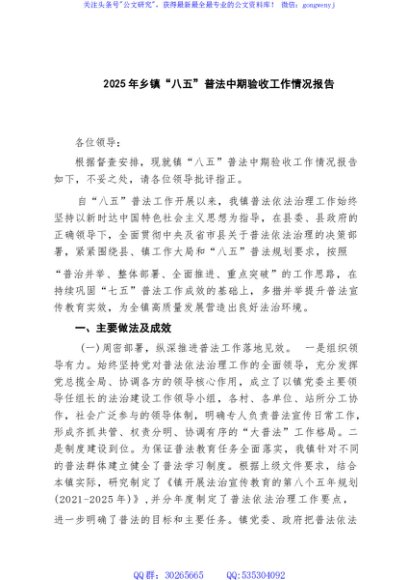 / (5篇)2025年乡镇“八五”普法中期验收工作情况报告