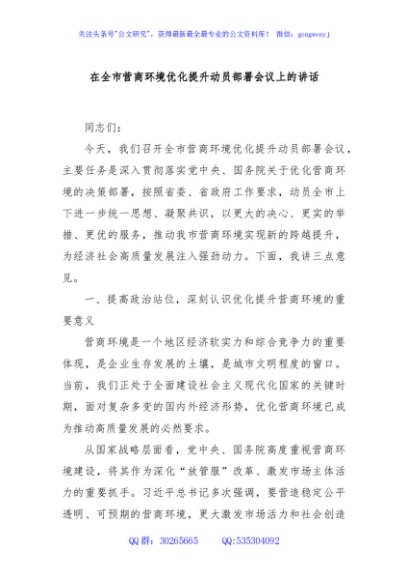 / 在全市营商环境优化提升动员部署会议上的讲话