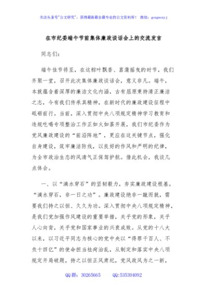 / 在市纪委端午节前集体廉政谈话会上的交流发言