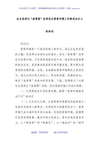 / 在全县深化“放管服”改革优化营商环境工作推进会议上的讲话