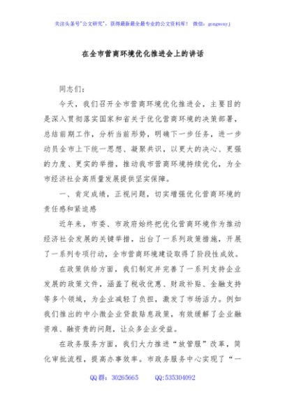 / 在全市营商环境优化推进会上的讲话