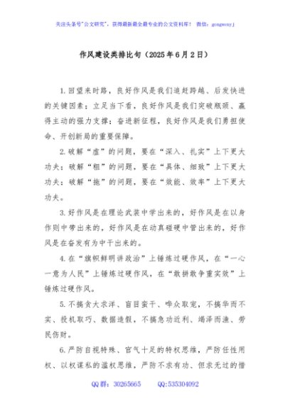 / 作风建设类排比句(2025年6月2日)