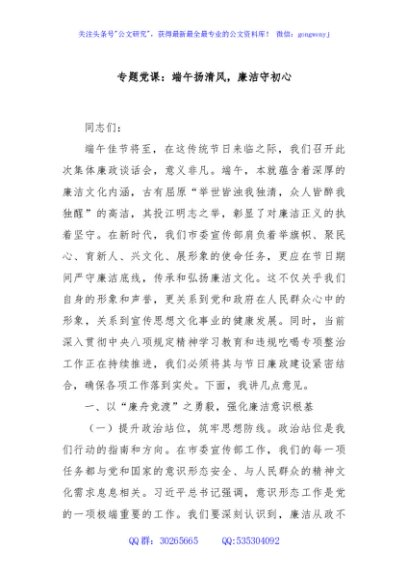 专题党课:端午扬清风,廉洁守初心