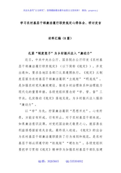 / (8篇)学习农村基层干部廉洁履行职责规定心得体会、研讨发言材料汇编