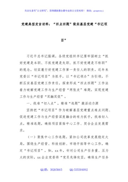 / 党建典型发言材料:“四点四题”做实基层党建“书记项目”
