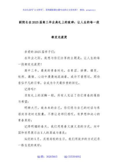 / 副院长在2025届高三毕业典礼上的致辞:让人生的每一段都发光滚烫