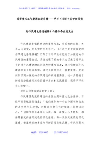 / 砥砺清风正气凝聚奋进力量——学习《习近平关于加强党的作风建设论述摘编》心得体会交流发言