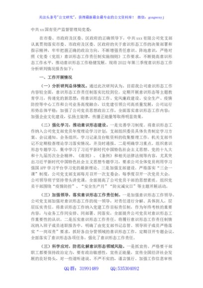 / 国企关于2022年第三季度意识形态分析研判报告