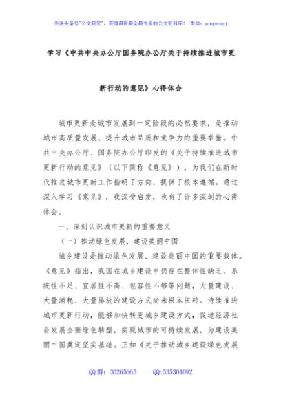 / 学习《中共中央办公厅国务院办公厅关于持续推进城市更新行动的意见》心得体会