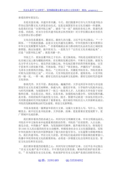 / 在市校共建合作协议签约暨文化大讲堂启动仪式上的致辞