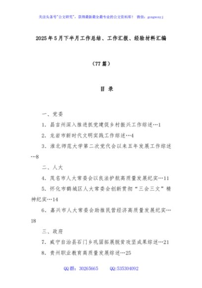 / (77篇)2025年5月下半月工作总结、工作汇报、经验材料汇编