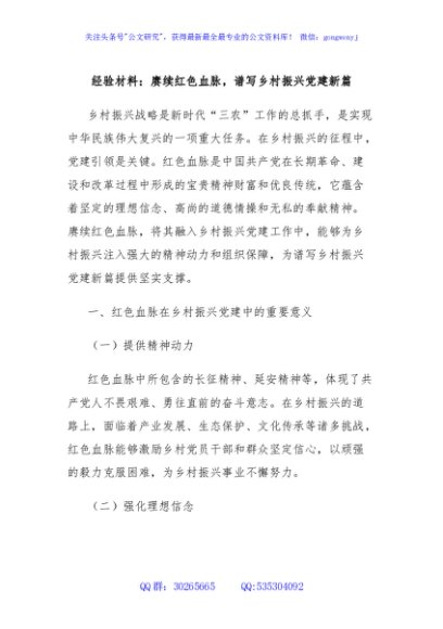 / 经验材料:赓续红色血脉,谱写乡村振兴党建新篇