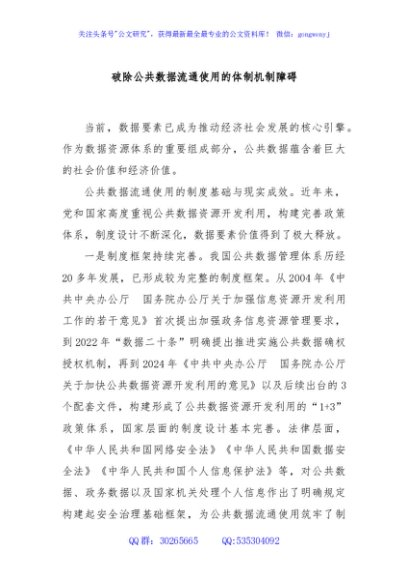 / 破除公共数据流通使用的体制机制障碍