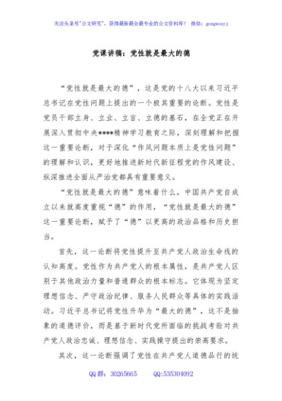 / 党课讲稿:党性就是最大的德