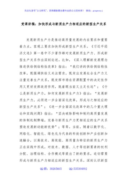 / 党课讲稿:加快形成与新质生产力相适应的新型生产关系