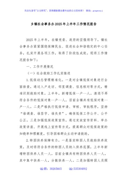 / 乡镇社会事务办2025年上半年工作情况报告