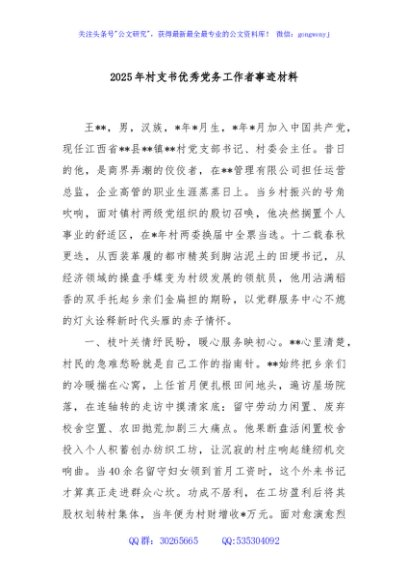 / 2025年村支书优秀党务工作者事迹材料