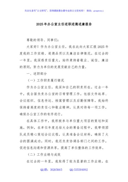 / 2025年办公室主任述职述德述廉报告