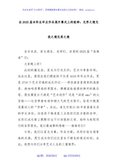 / 在2025届本科生毕业作品展开幕式上的致辞:无界之境无我之境无畏之境