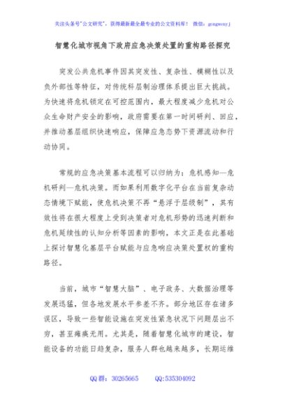 / 智慧化城市视角下政府应急决策处置的重构路径探究