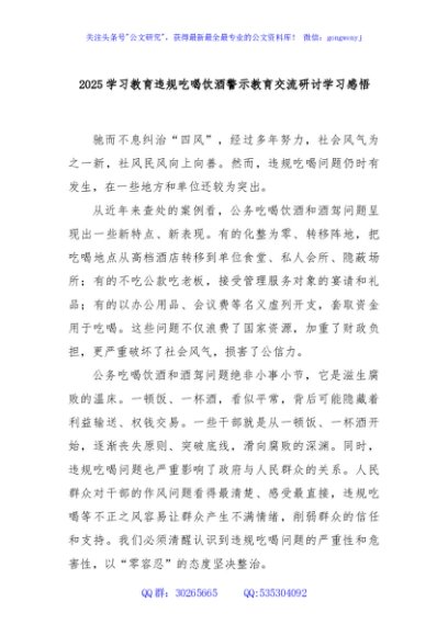 / 2025学习教育违规吃喝饮酒警示教育交流研讨学习感悟