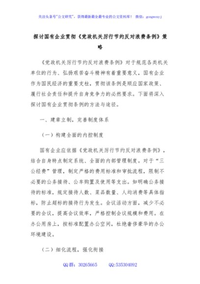 / 探讨国有企业贯彻《党政机关厉行节约反对浪费条例》策略