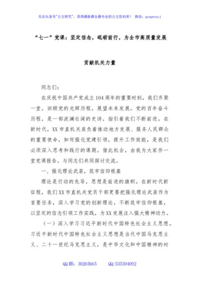 / “七一”党课:坚定信念,砥砺前行,为全市高质量发展贡献机关力量