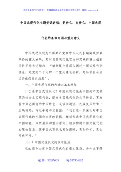 / 中国式现代化主题党课讲稿:是什么、为什么:中国式现代化的基本内涵与重大意义