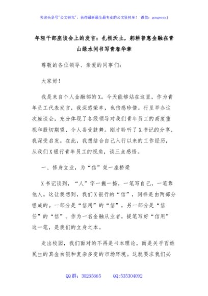 / 年轻干部座谈会上的发言:扎根沃土,躬耕普惠金融在青山绿水间书写青春华章