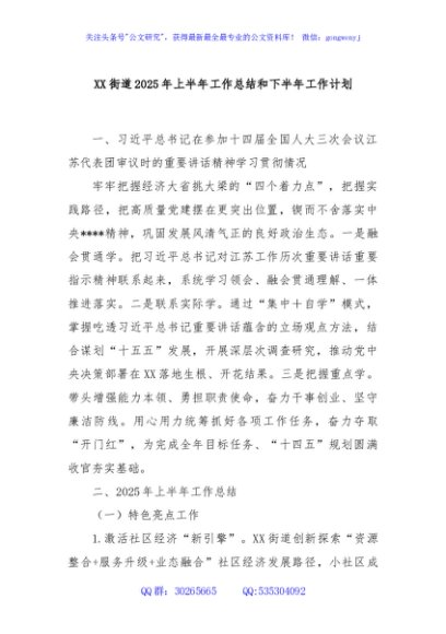 / XX街道2025年上半年工作总结和下半年工作计划