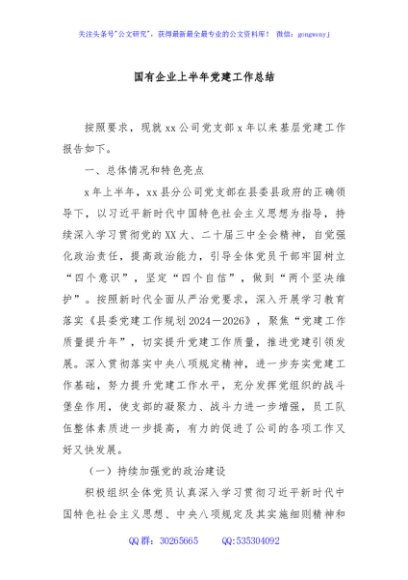 / 国有企业上半年党建工作总结