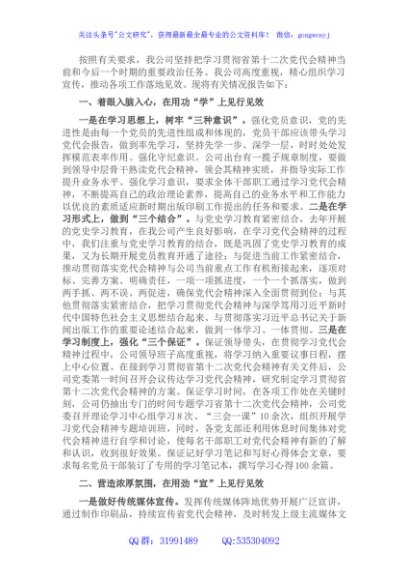 关于学习贯彻吉林省第十二次党代会精神的报告