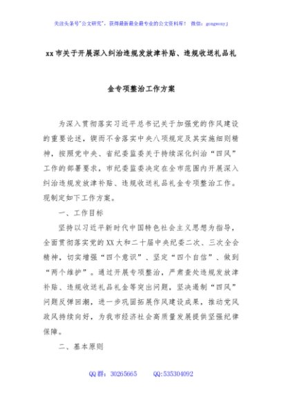 / xx市关于开展深入纠治违规发放津补贴、违规收送礼品礼金专项整治工作方案