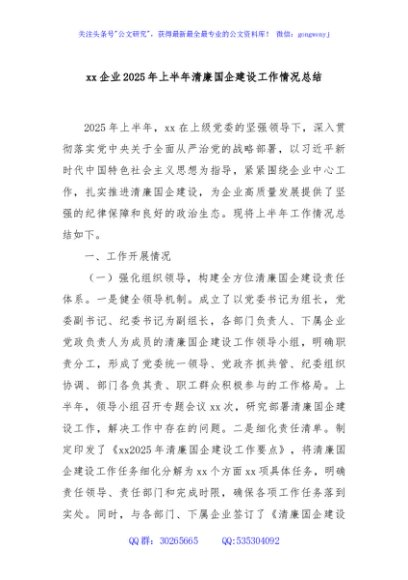 / xx企业2025年上半年清廉国企建设工作情况总结