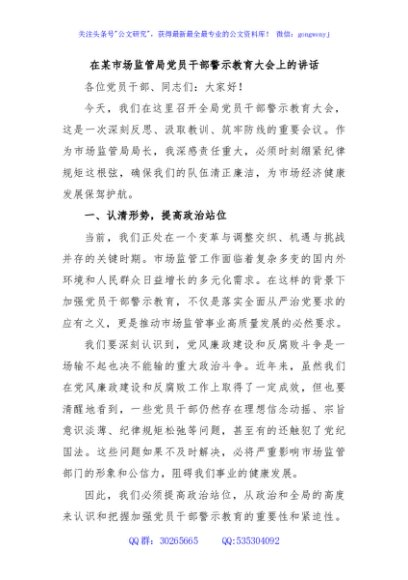 / 在某市场监管局党员干部警示教育大会上的讲话
