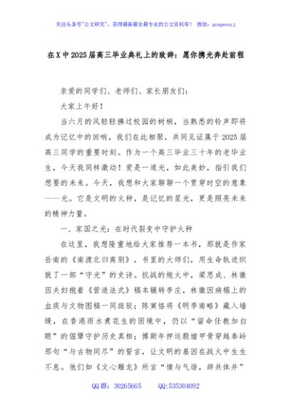 / 在X中2025届高三毕业典礼上的致辞:愿你携光奔赴前程