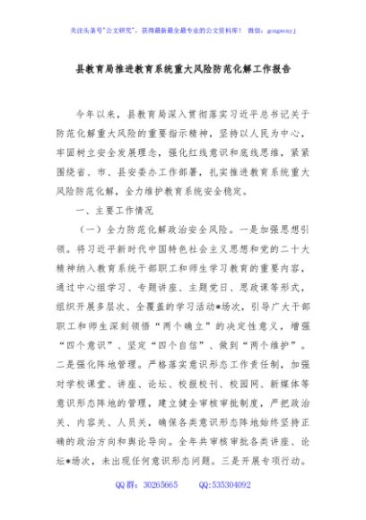 / 县教育局推进教育系统重大风险防范化解工作报告