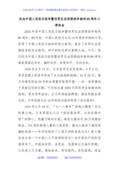 / 纪念中国人民抗日战争暨世界反法西斯战争胜利80周年心得体会