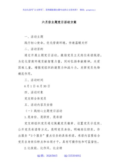 / 六月份主题党日活动方案