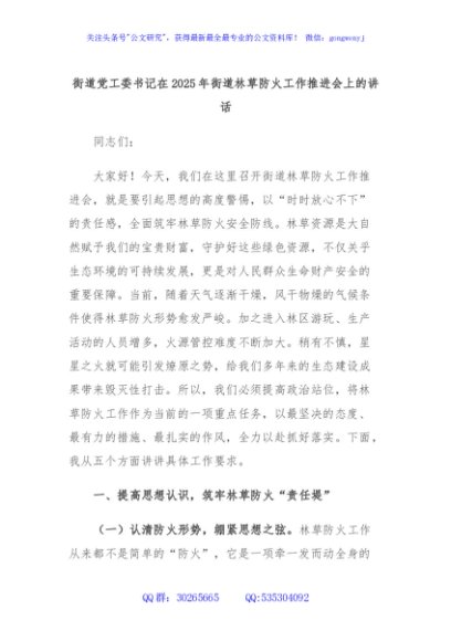 / 街道党工委书记在2025年街道林草防火工作推进会上的讲话