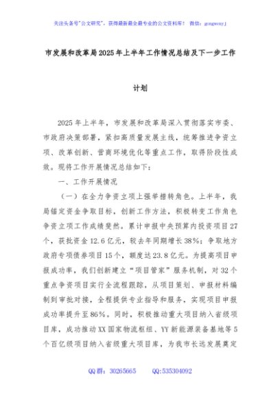 / 市发展和改革局2025年上半年工作情况总结及下一步工作计划