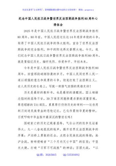 / 纪念中国人民抗日战争暨世界反法西斯战争胜利80周年心得体会2