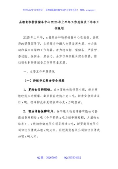 / 县粮食和物资储备中心2025年上半年工作总结及下半年工作规划